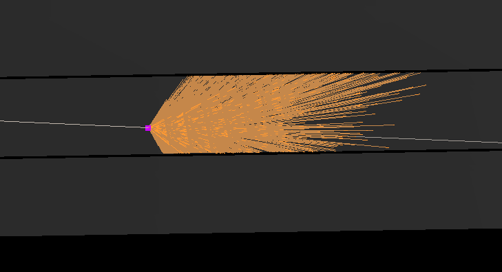 I see that Cherenkov photons are produced but I also see that they are all lost/killed/absorbed as soon as they hit the first bar surface. I am attaching a screen snapshot showing a side view, a muon track producing many photons that all die as soon as the first surface is hit. It looks as if G4 doesn't know what to do with the photons, how to propagate them inside the material.