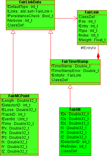 Now the new FairMCPoint and FairHit has to be understood as an example, in fact even now before changing anything you can skip them and define your own classes the only thing the framework need is that you inherits from TObject in ROOT nothing more. Now with the new changes it get clearer and in case you need to use the fair links you inherits from FairlinkData, otherwise you just define your own classes that are TObjects. The same is true for the Hit Class if you went to use our scheme for time base simulation you inherits from the FairTimeStamp, otherwise you define your own.