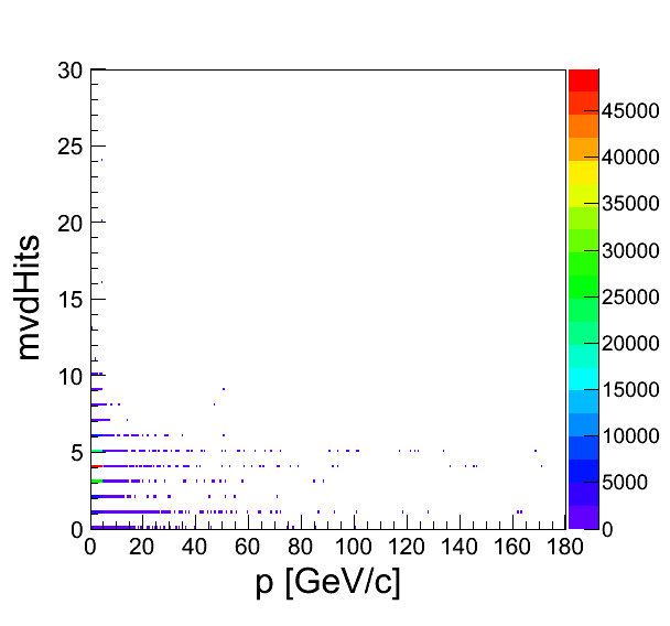 I tried to have a look (after some advices from Stefano) if one can find some topology of this high momenta looking into: number of hits in MVD or STT or