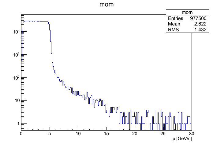 I have simulated muons (flat distributions using pgun) in the momentum range: