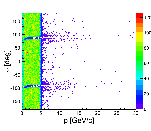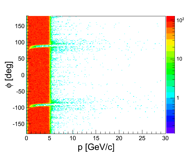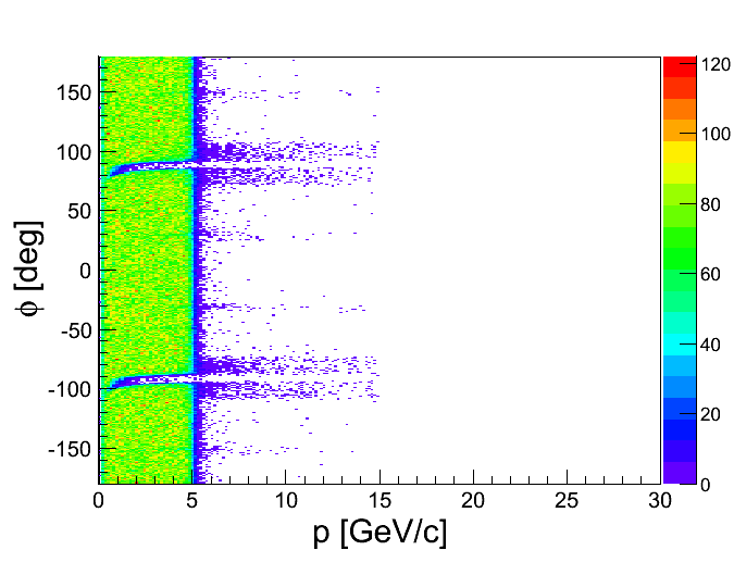 SO in the attachment you can see several plots. All plots are done as a function of momentum, so you can see not only problematic region, but also good one. In the case when i plot theta vs phi i put cut on p > 6 GeV/c.