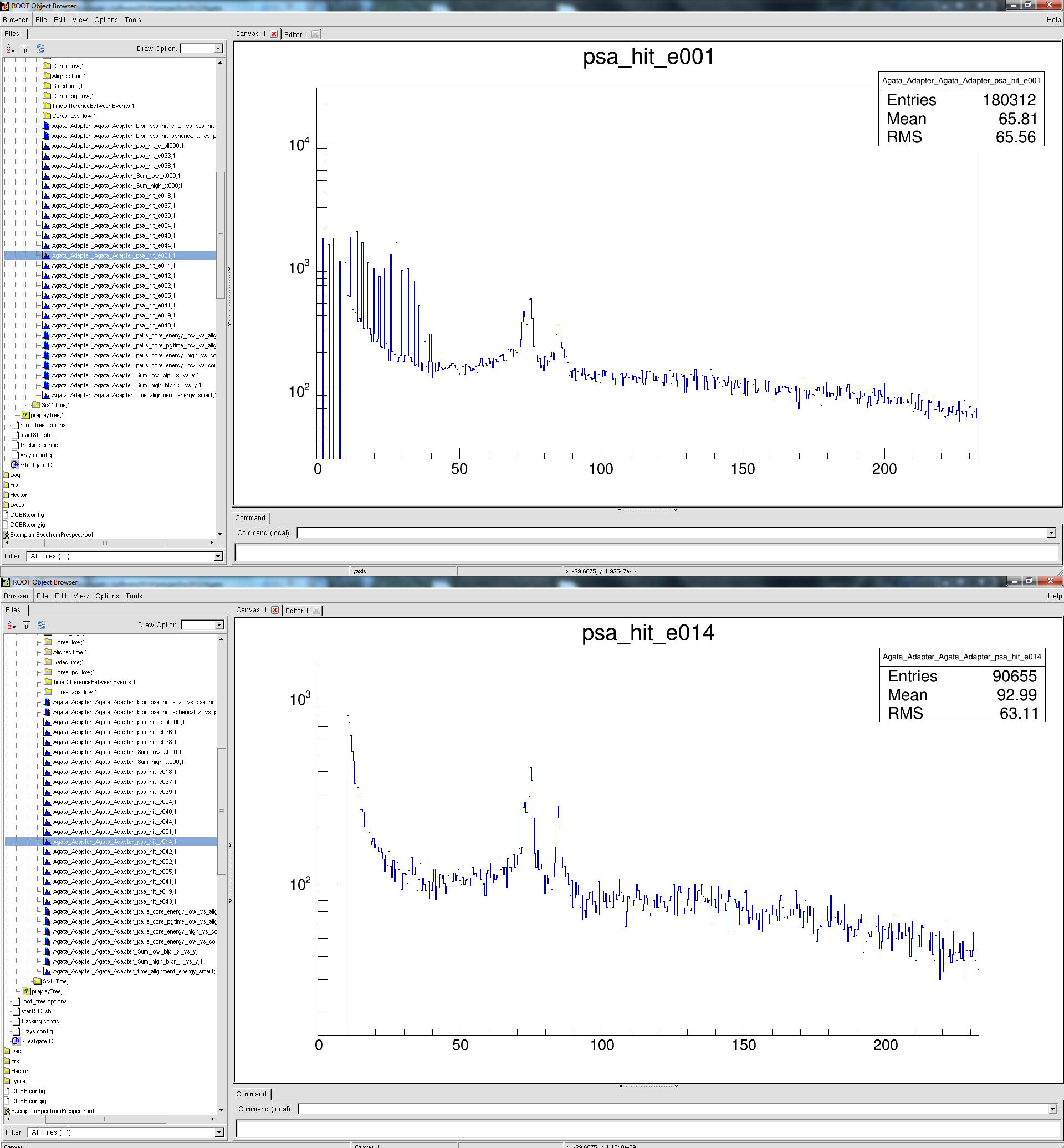P.s. In attachment the energy spectrum for AGATA hits obtained with the previous code (the blue one)and also the spectrum obtained with prespec code (the red one)
