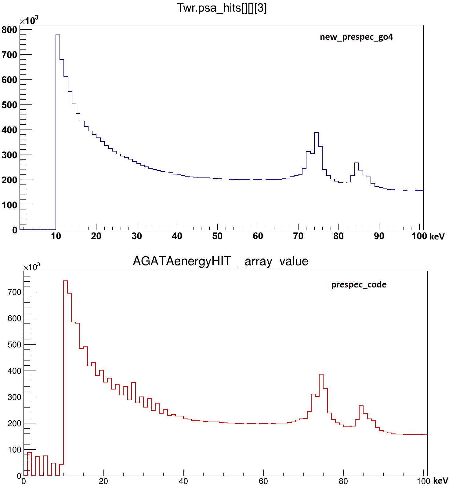 P.s. In attachment the energy spectrum for AGATA hits obtained with the previous code (the blue one)and also the spectrum obtained with prespec code (the red one)
