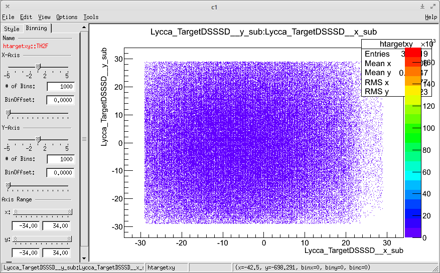 After what Michael wrote regarding to the unknown position of the Target DSSSD in the measurements report, I remember that the hit points suggest a small shift in the -x axis in my experiment: