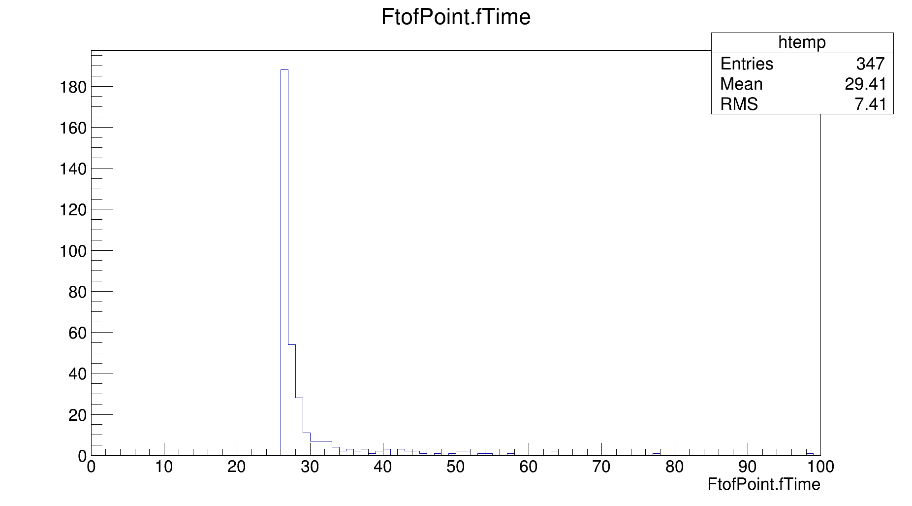 I attached a file, showing the time stamp distribution in the FTof detector for pbar p -> lambda lambda bar for 15 GeV primary momentum. Just to remind, the FTof is located around 7.8 meters in forward direction. a particle moving with speed of light should take around 26 ns to reach this detector. As shown there are signals in the detector after a few ns. Therefore for example TOF based Pid algorithms breaks down completely.