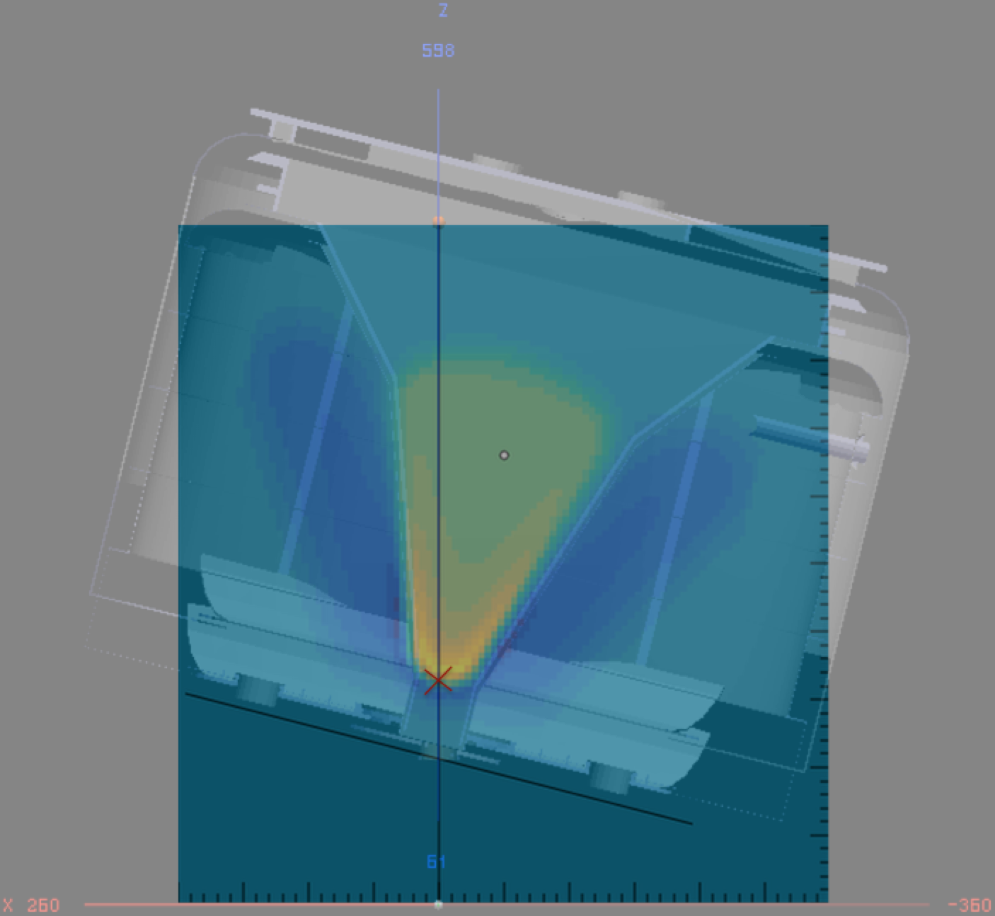 In the figure, the orange point at (0,0,163.4)cm in R3B coordinates is the center of the map field, which is clearly not in the symmetry axis of the magnet case.