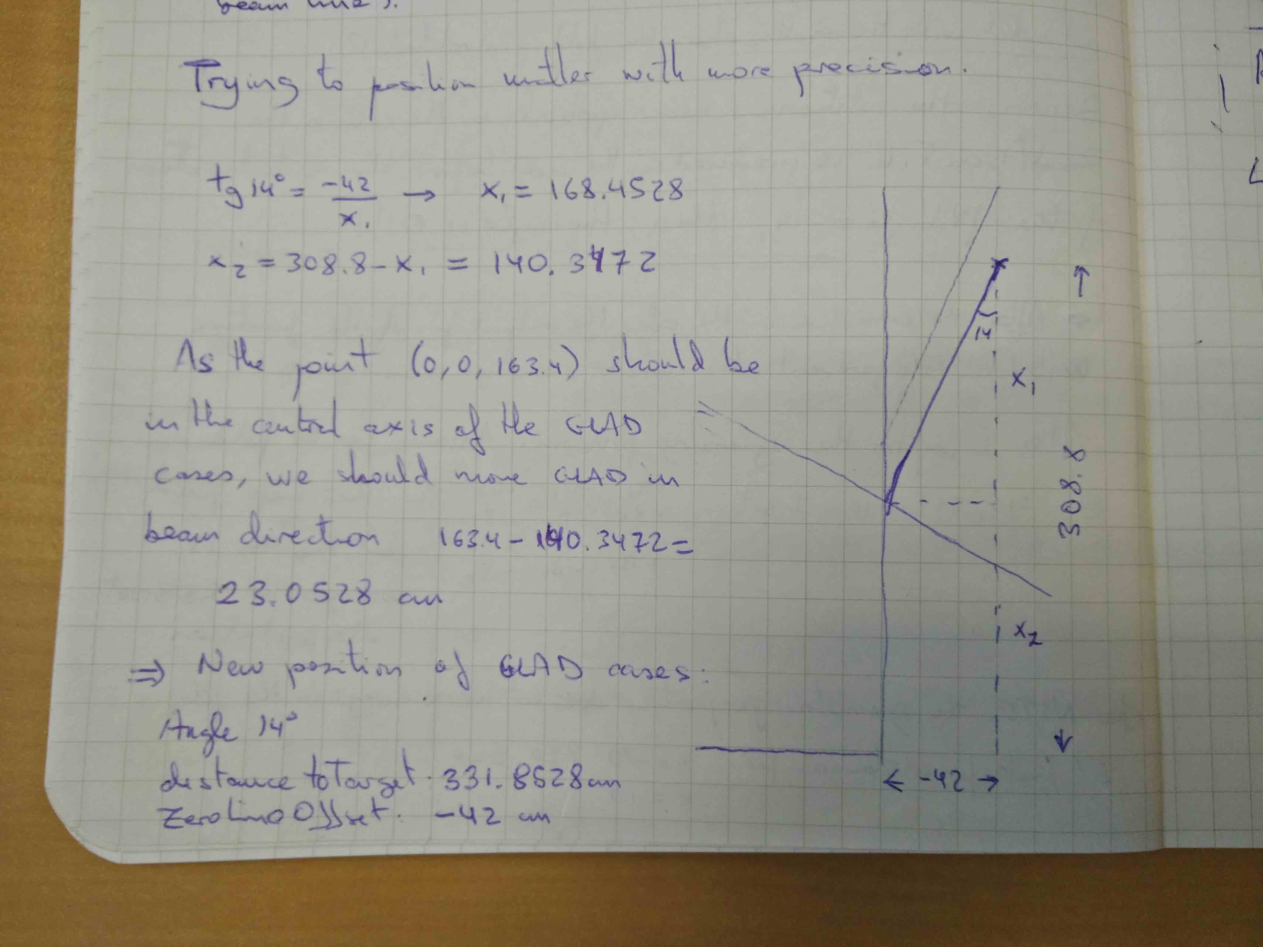 - as the GLAD entrance tube seems to be perfectly centred with the beam line, the only freedom is to move it along the beam line.