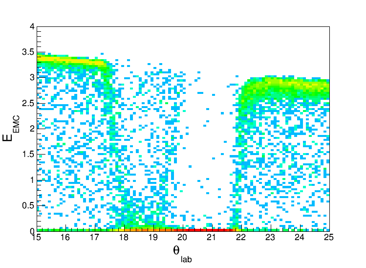 attached is the deposit energy of the electron in the EMC as a function of the polar angle in the lab frame (from the simulation of ppbar->e+e- at p=3.3 GeV/c using the pandaroot "dev").