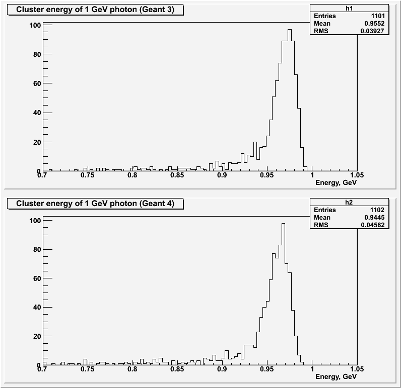 Home » PANDA » PandaRoot » EMC » Geant 3, Geant 4 VMC, native geant 4 comparison