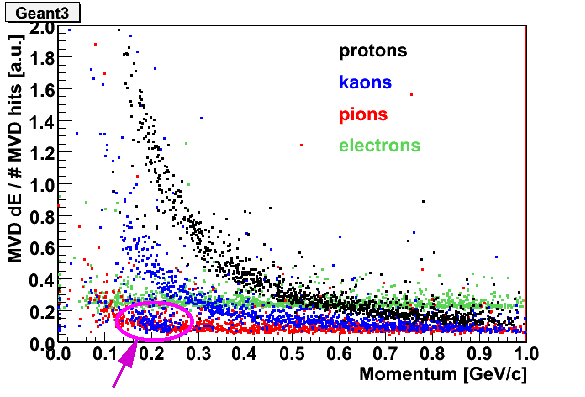 However, I remember you the dE/dx plot for STT done with geant3 (that I have also showed at CHEP), and even there the electrons stayed much higher than pions.