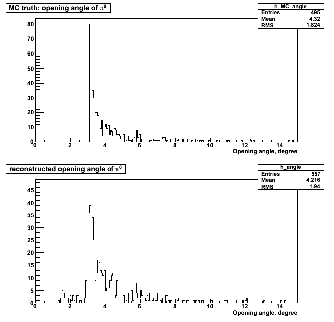 I tested the bump splitting for a couple of different scenarios. 5 GeV/c pi0's have been simulated separately for the forward endcap (10-20 deg) and for the forward barrel part (30-90 deg) for two different geometries. I used in the simulation macro the initialization