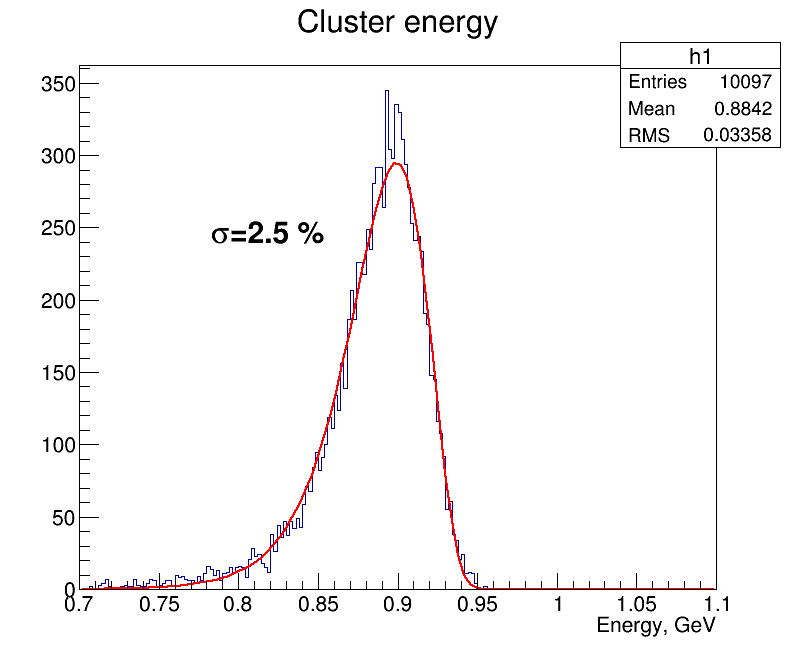 Reconstructed energy of 1 GeV photons