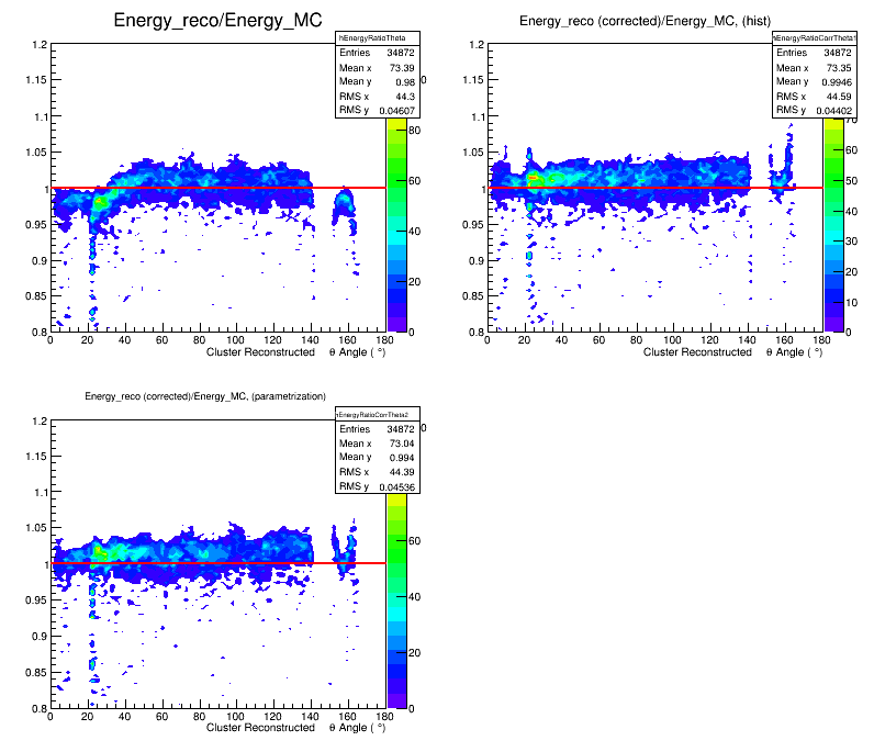 I did study for barrel 30-130 degree range, 10 k events, 1 GeV photons.