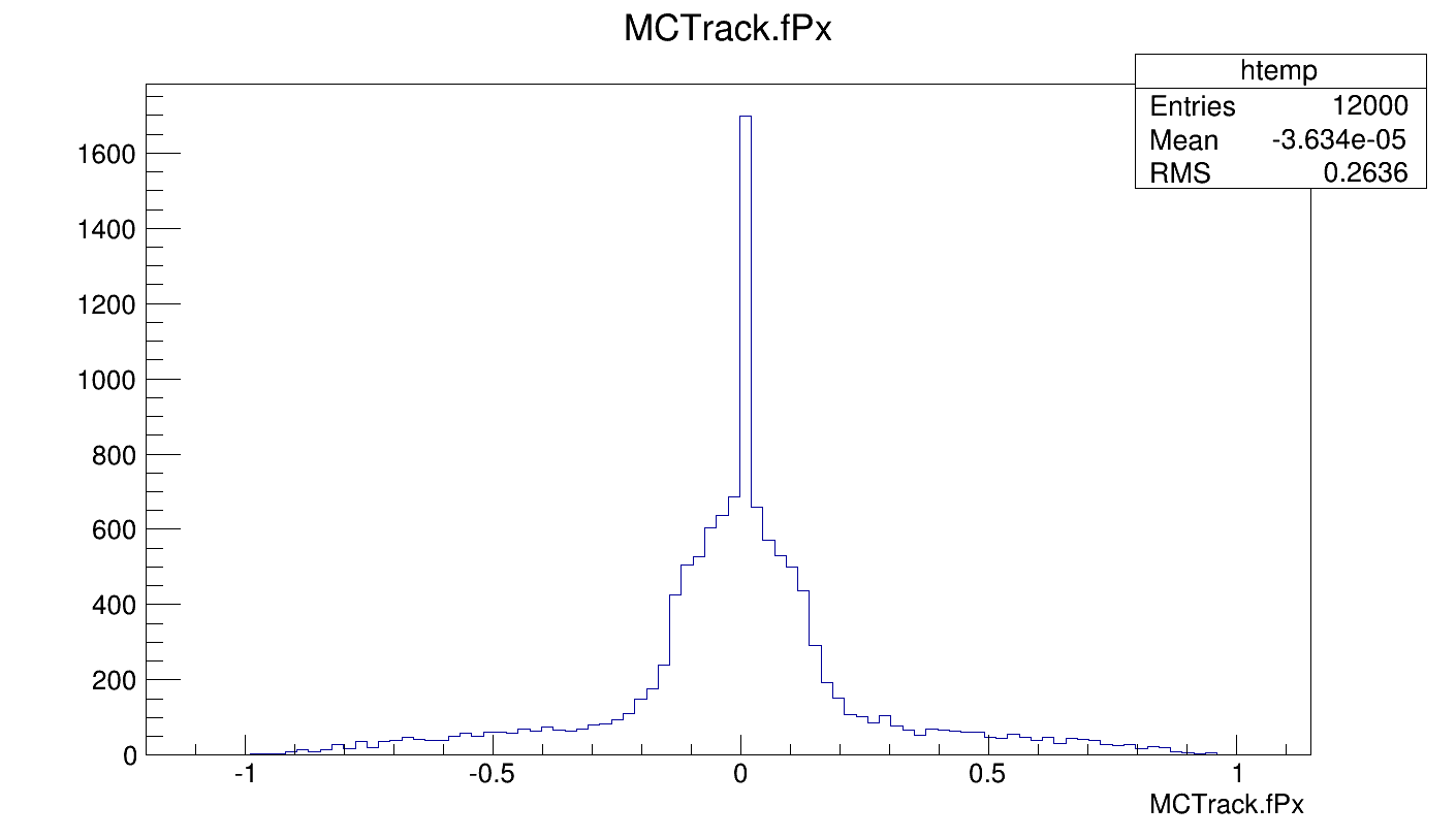 something funny happens, if I check the plot of MCTrack.fPx and MCTRack.fPy. I got a spike on 0, not a distribution.