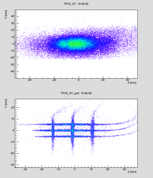 In that case, can you please post the x vs y for both TPCs for the calibration runs with the mask?