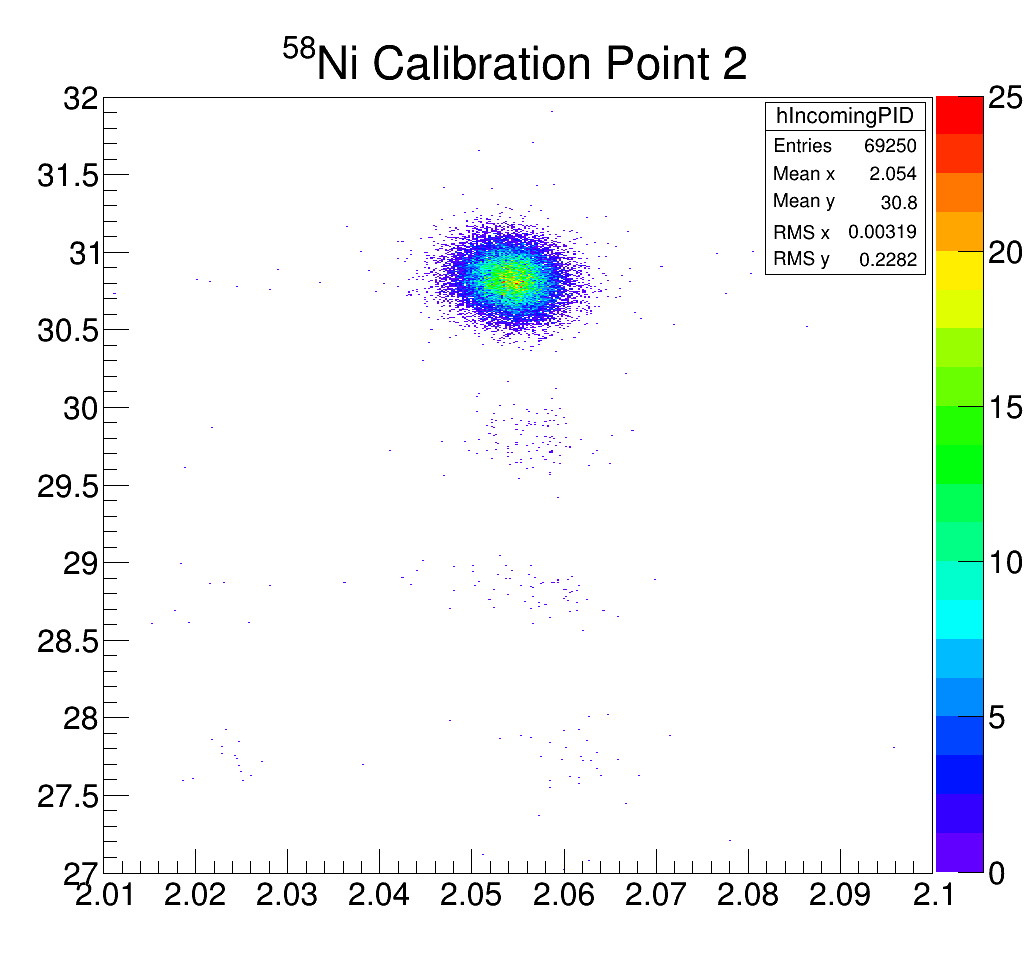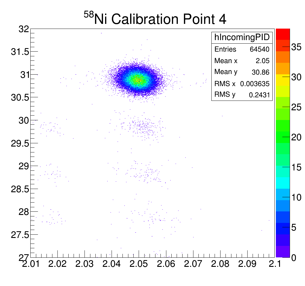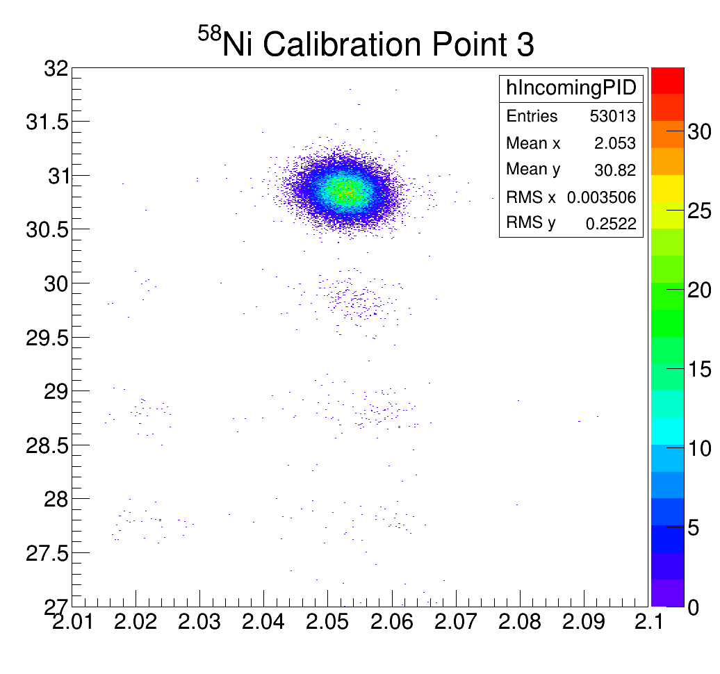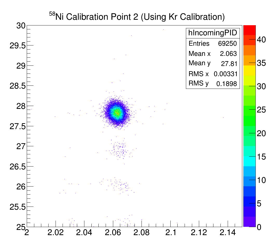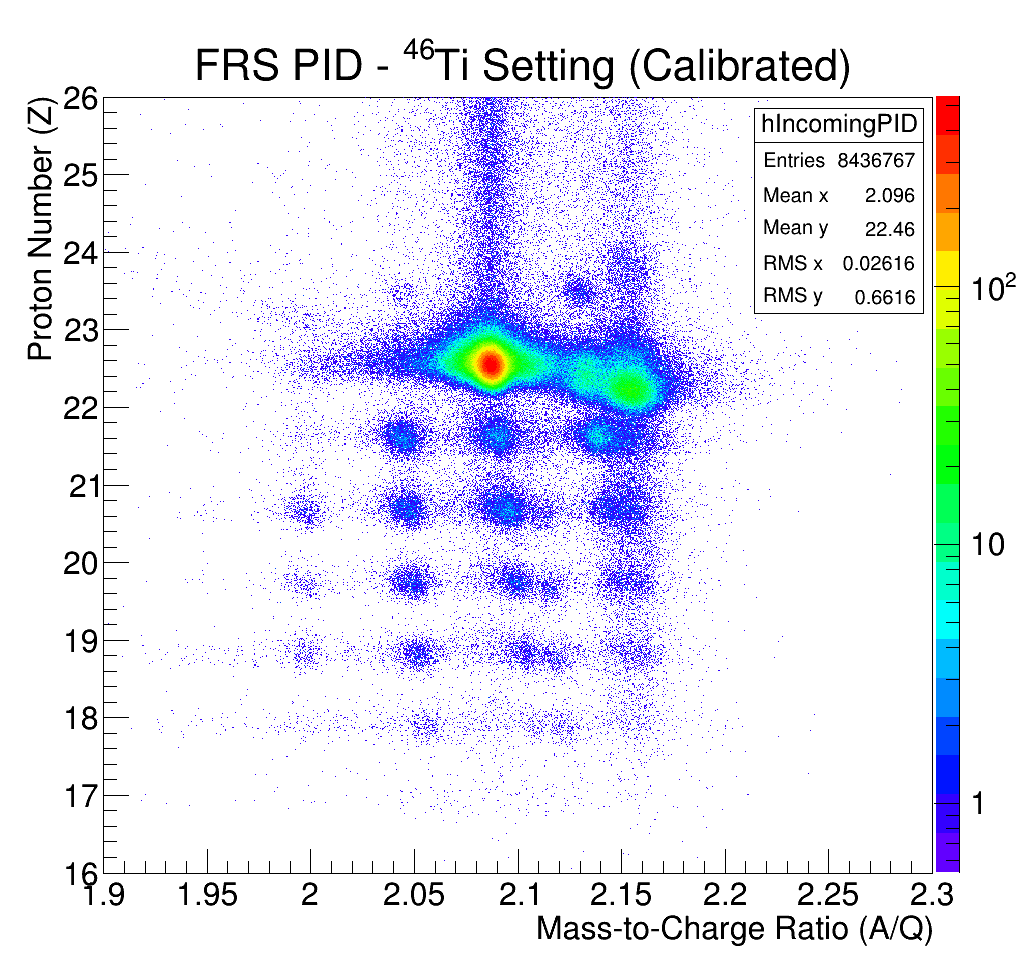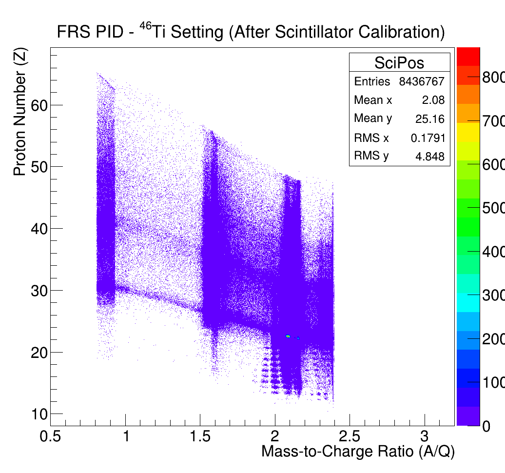 - The end result is attached as well as the PID before this calibration (leaving an old calibration already in place). [where the old PID plot is using an incorrect 'Z_in 35', to get the '46Ti blob' at Z~22 and the new one is using the correct 'Z_in 22' in the FrsId.par file].