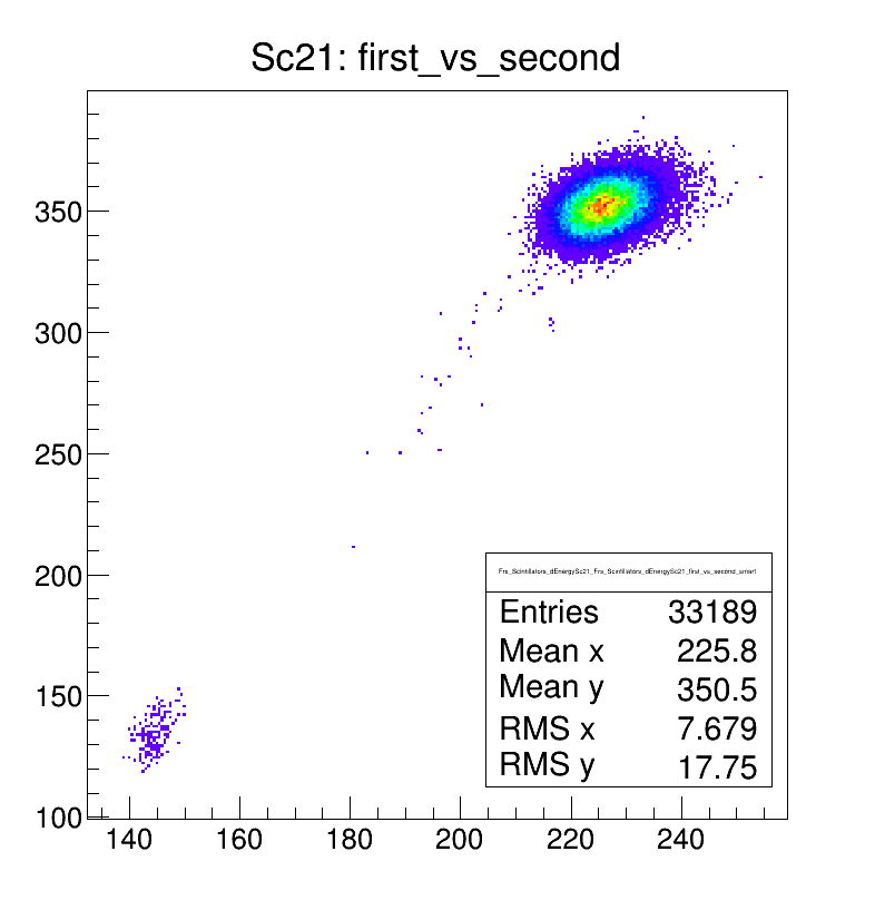 You can plot for different runs the charge in one PMT of Sc21 vs the charge in the other one without any gate. This plot should look more or less the same for each file.If at some point the amplitud starts to get too small you it is an indication of rate-related problems in the scintillator or in one of the PMTS. You can also check the scintillator by plotting Qleft/Qright vs (time left-time right).
