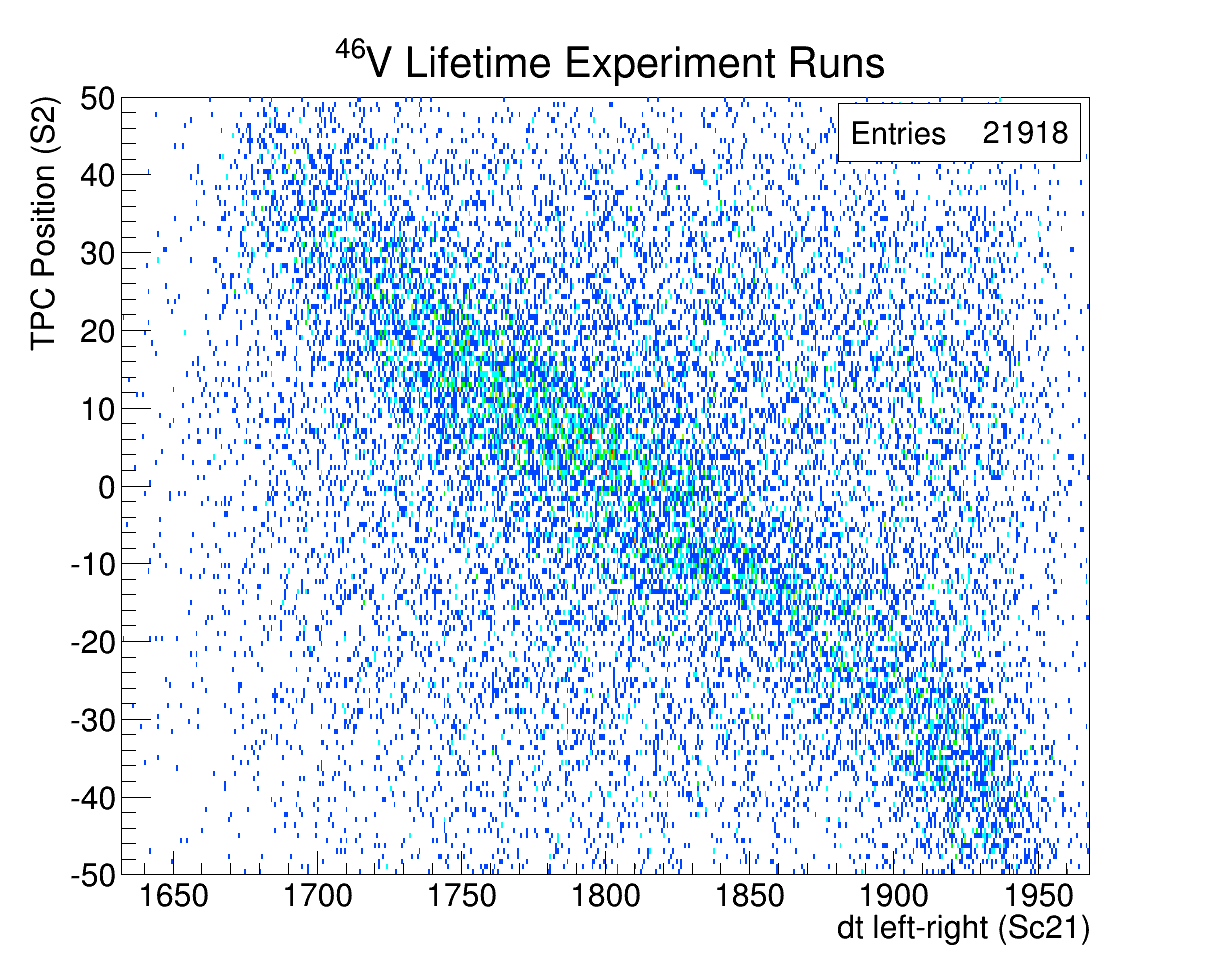 - TPC Position vs Sc21 dt left-right [raw] (for both the 1st calibration point and the last few runs of 46V)