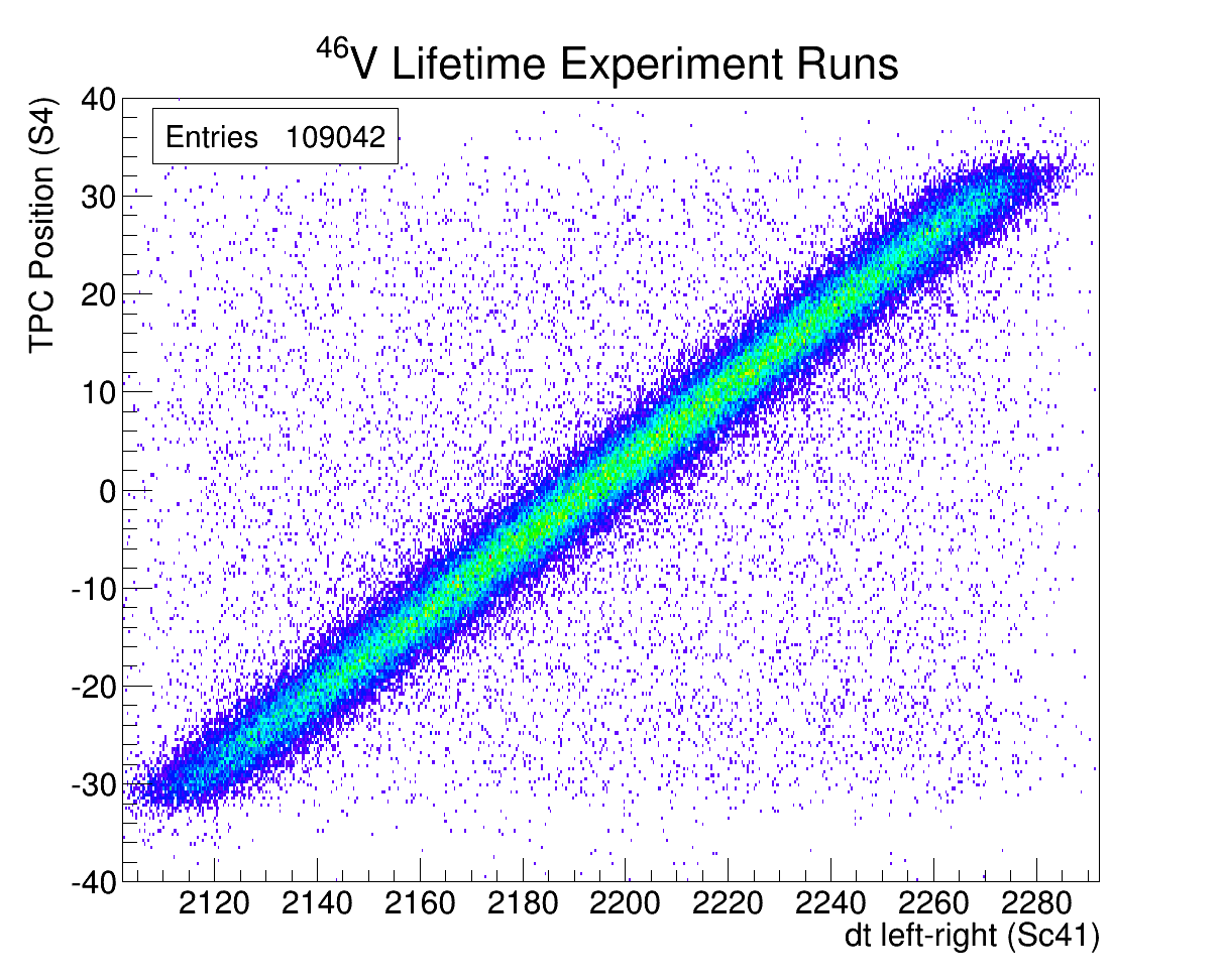 - TPC Position vs Sc41 dt left-right [raw] (for both the 1st calibration point and the last few runs of 46V)