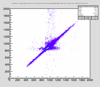 Now, look for the plots that show the correct correlation between both quantities. If the combination of crystal-ID/multihit-channel is correct, you should get a plot similar to the one "TimeTime_good.png" (attached). For all wrong combination, the plot looks similar to "TimeTime_bad1.png".